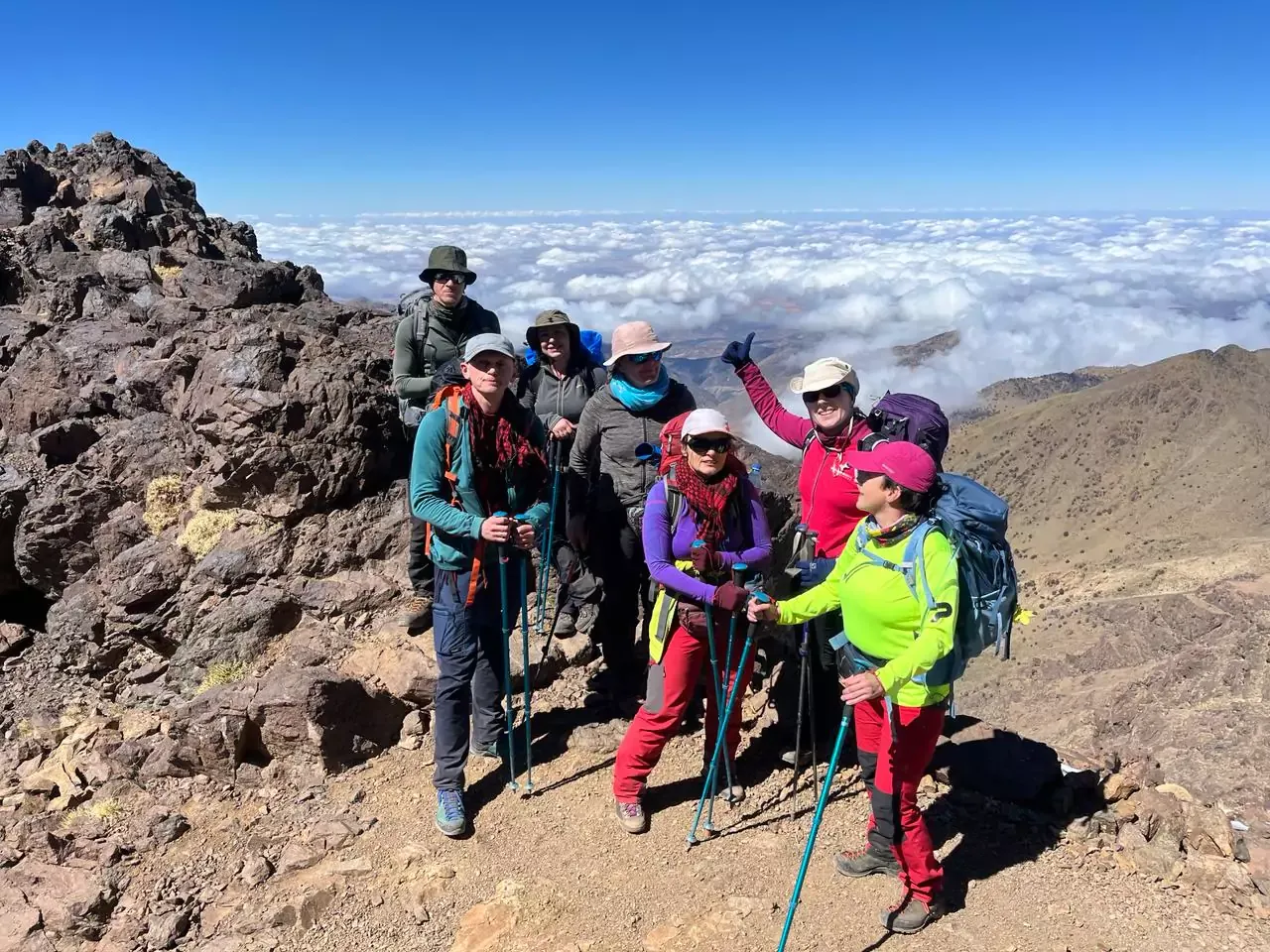 After reaching the top, you descend back to the refuge and continue to Imlil, completing the trek.